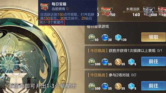 其实只要每天完成150活跃任务,就可以得到1-3个紫星币。基本上打两局游戏就完成了。