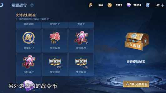 战令币兑换皮肤宝箱可以获得的荣耀积分转魔法球,坚持个200天就绝对能攒够300紫星币。免费获取一款星传说皮肤。
