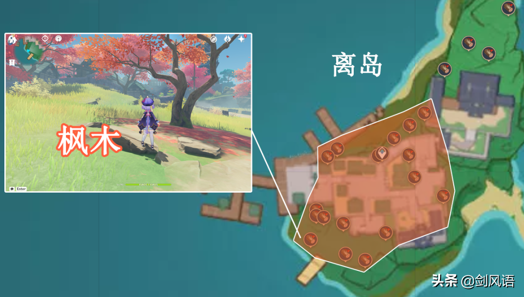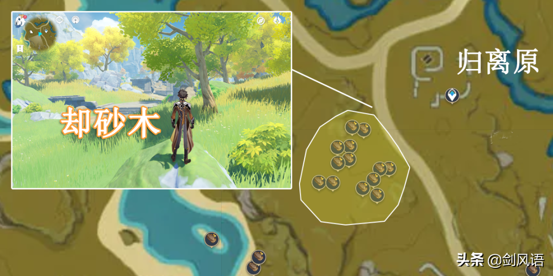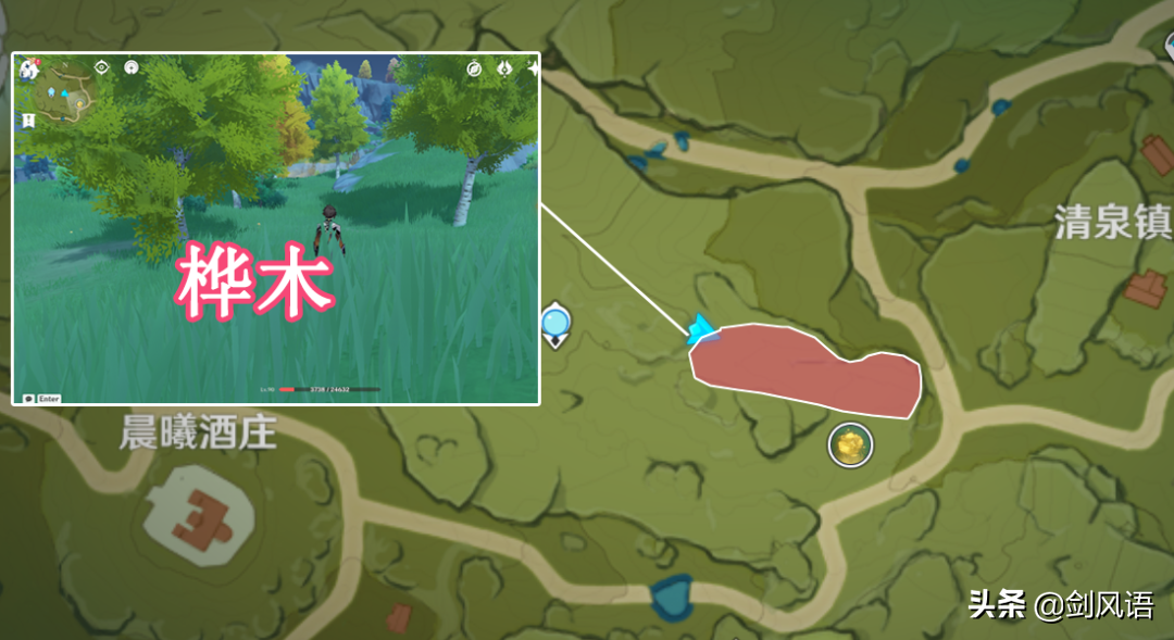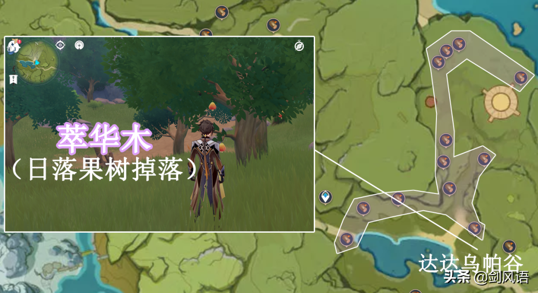 5.萃华木,如下图,位于蒙德达达乌帕谷附近,打落日果树掉落。
