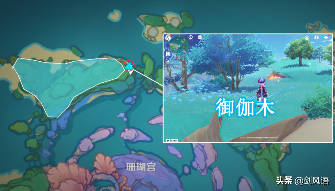 7.御伽木,如下图,位于珊瑚宫上方山坡上。