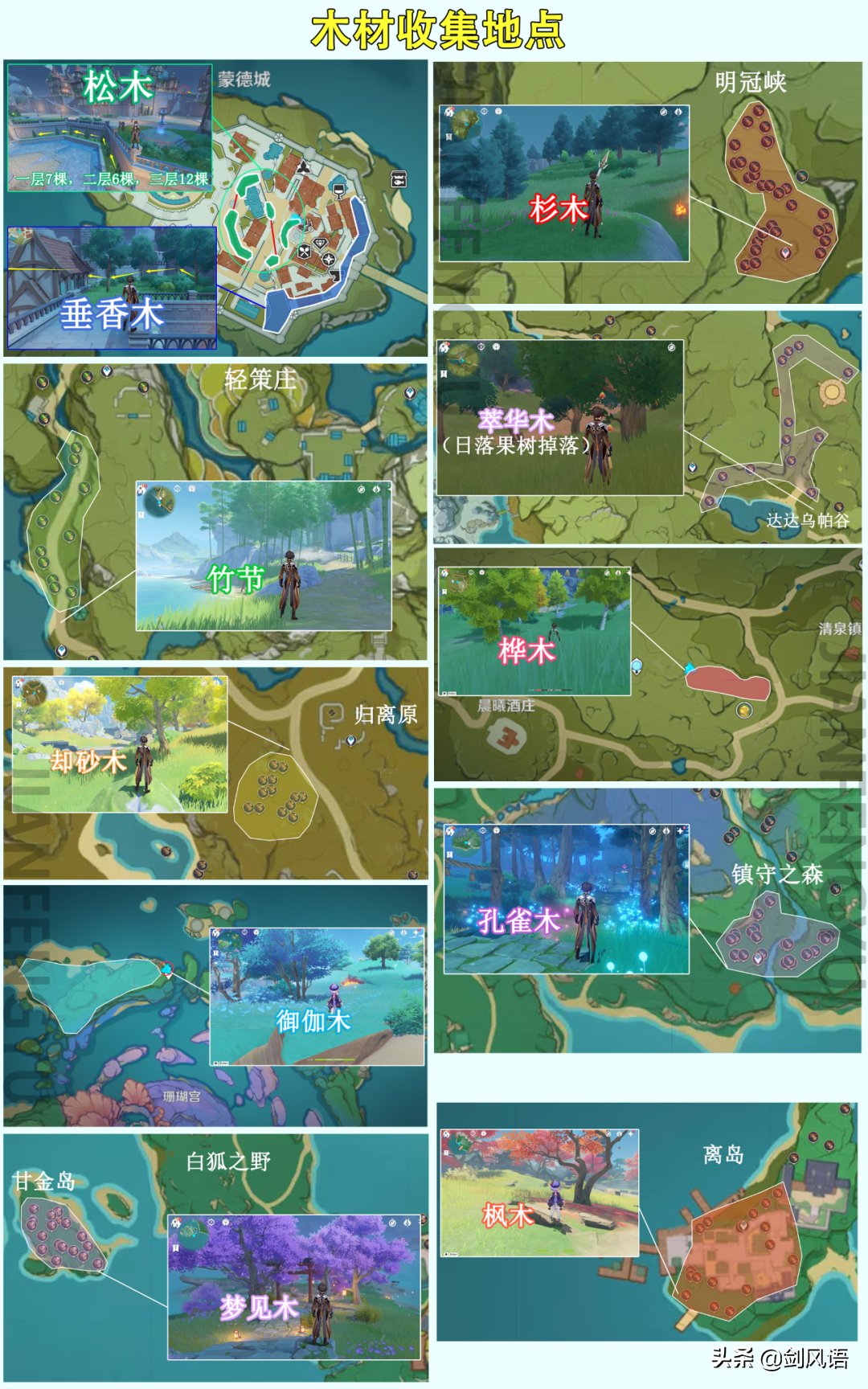 以下是全部木材收集地点拼成的长图,有需要可以点击保持下来,留着用。