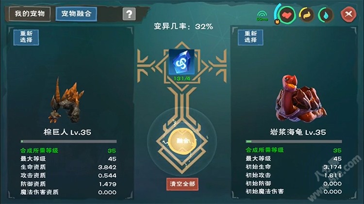 融合方法:35级棕巨人+35级岩浆海龟+4个融合石