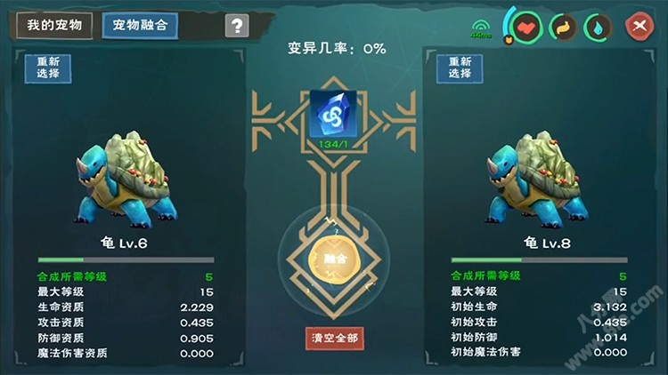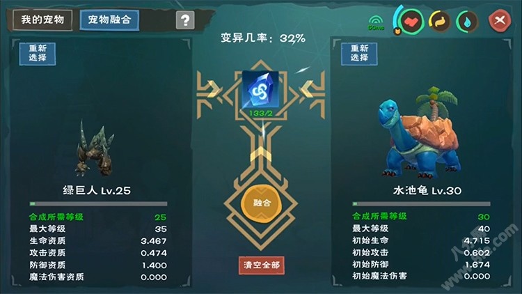融合方法:25级绿巨人+30级水池龟+2个融合石