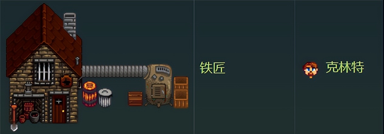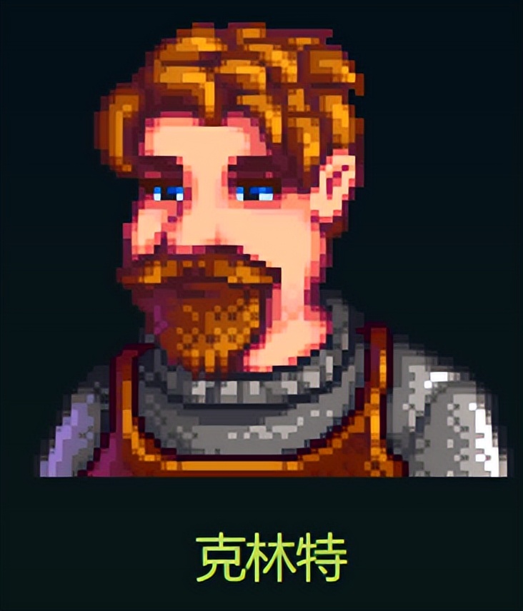 克林特是镇上的铁匠,一般开晶石、买矿石或者是升级工具都需要找他,此人不可攻略