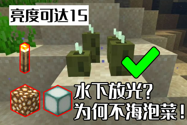 那么你的答案会是什么?不是萤石就是海晶灯了?毕竟着火的方块又不能放在水中,但萌新mc曾想过海泡菜也是个发光方块吗?并且它所提供的光照等级还可以高达15,比起火把还要高!