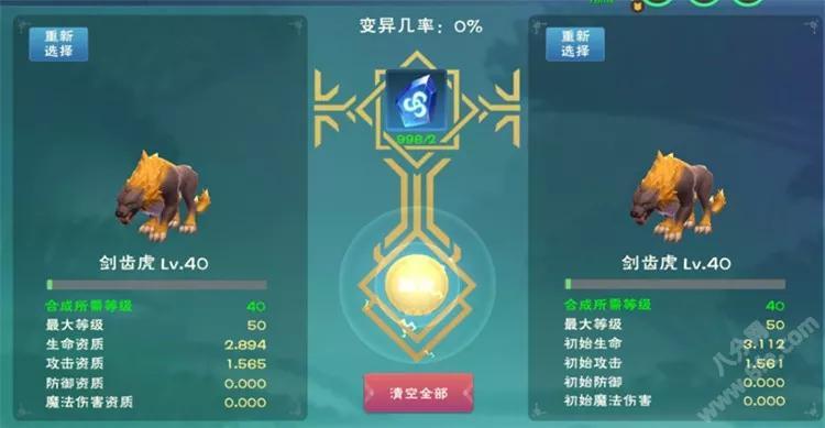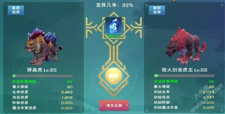 1、岩虎融合方法:40级剑齿虎+40级剑齿虎+2个融合石