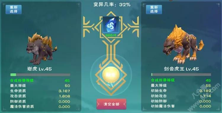 2.岩晶虎融合方法:45级岩虎+45级剑齿虎王+4个融合石