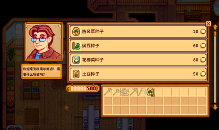 然后在每个星期四的时候还可以用三块五彩碎片到沙漠找商人去换取游戏中下矿第一神器魔法糖冰棍。
