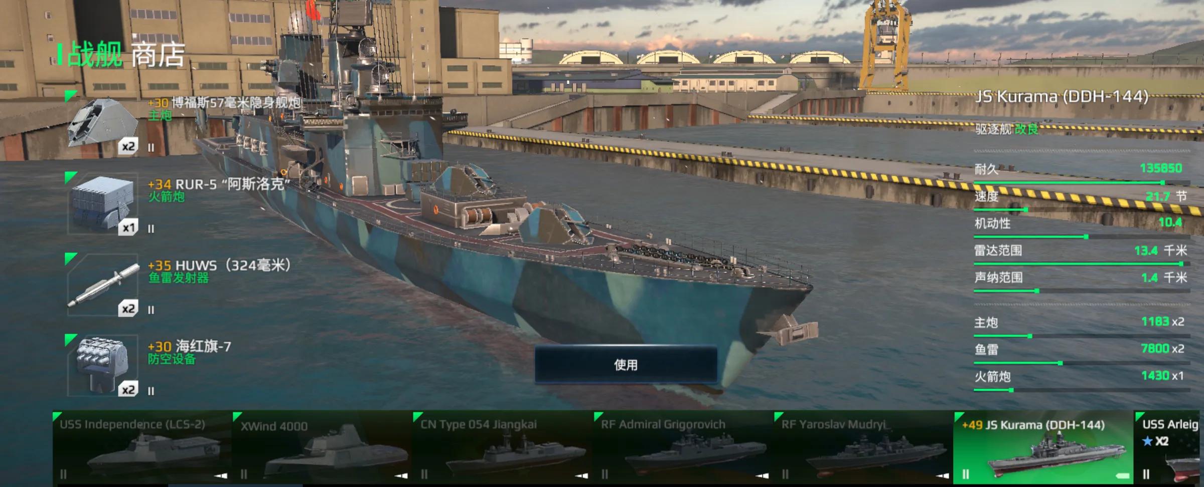 一:小日子的美金船,3.5公里以内放鱼雷伤害爆炸,不要用黄金买地平线,浪费钱,后期黄金需要用,这船除了打地效飞行器困难,不虚其他二级船,博福斯冷却快,伤害也算高,他虽然只有一个火箭炮,但阿斯洛克打鱼雷效果很好