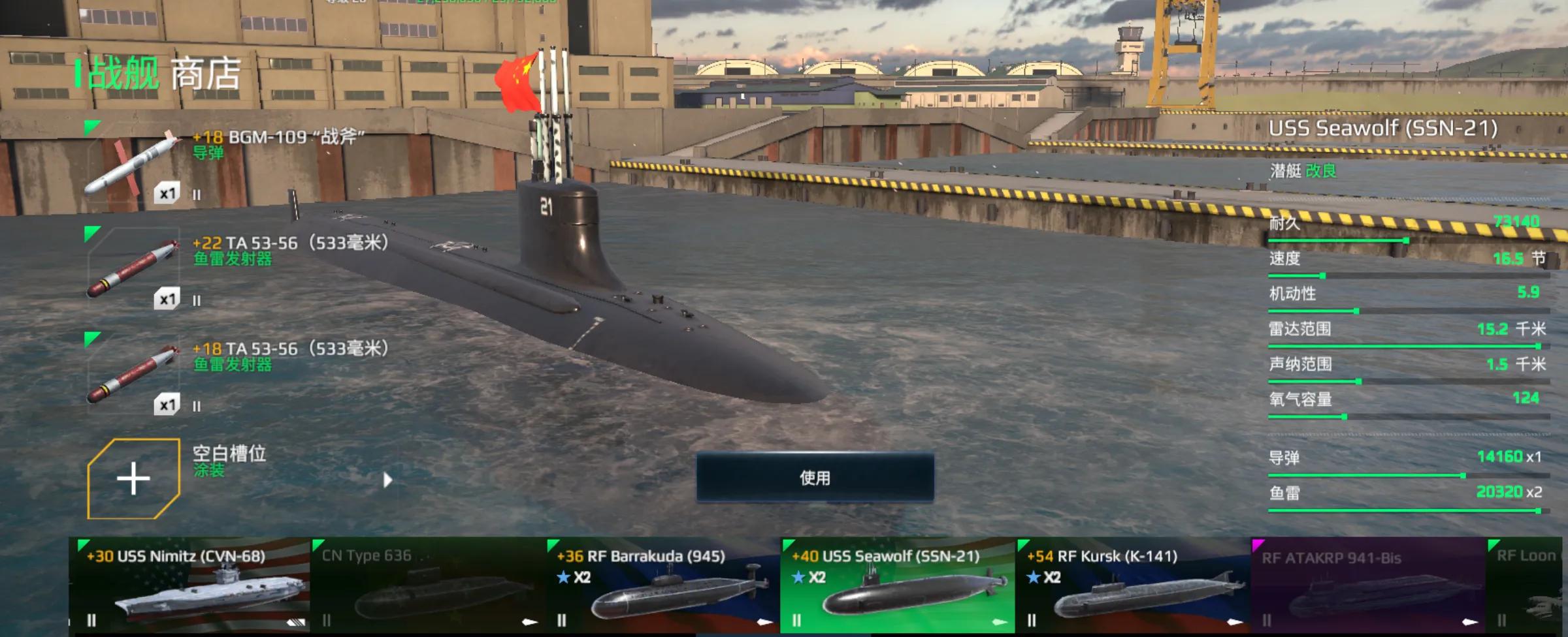 二:想玩潜艇买SSN-21,玩潜艇必须机动性高,学会躲鱼雷增加生存能力