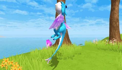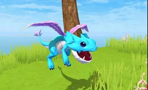 魔法灵龙通体亮蓝色,有双blingbling的大眼睛,瞳孔、双翅、尾尖的淡紫色让它看起来神秘又梦幻。