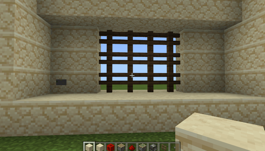 看到上图中的沙子没有?我们在上面放上栅栏,材质随意,高度随意,不过为了美观,不要太高,三四层即可: