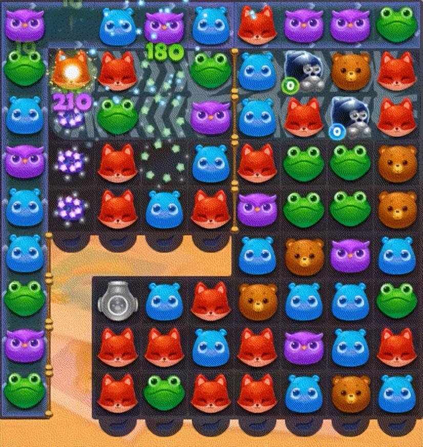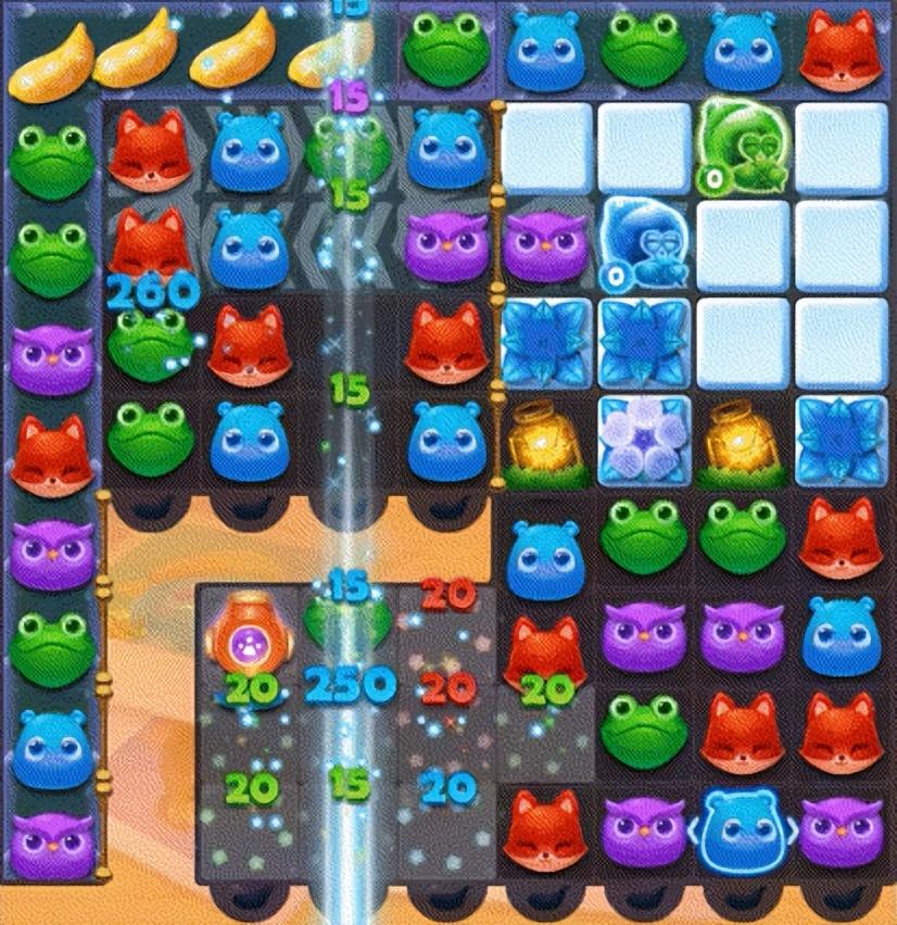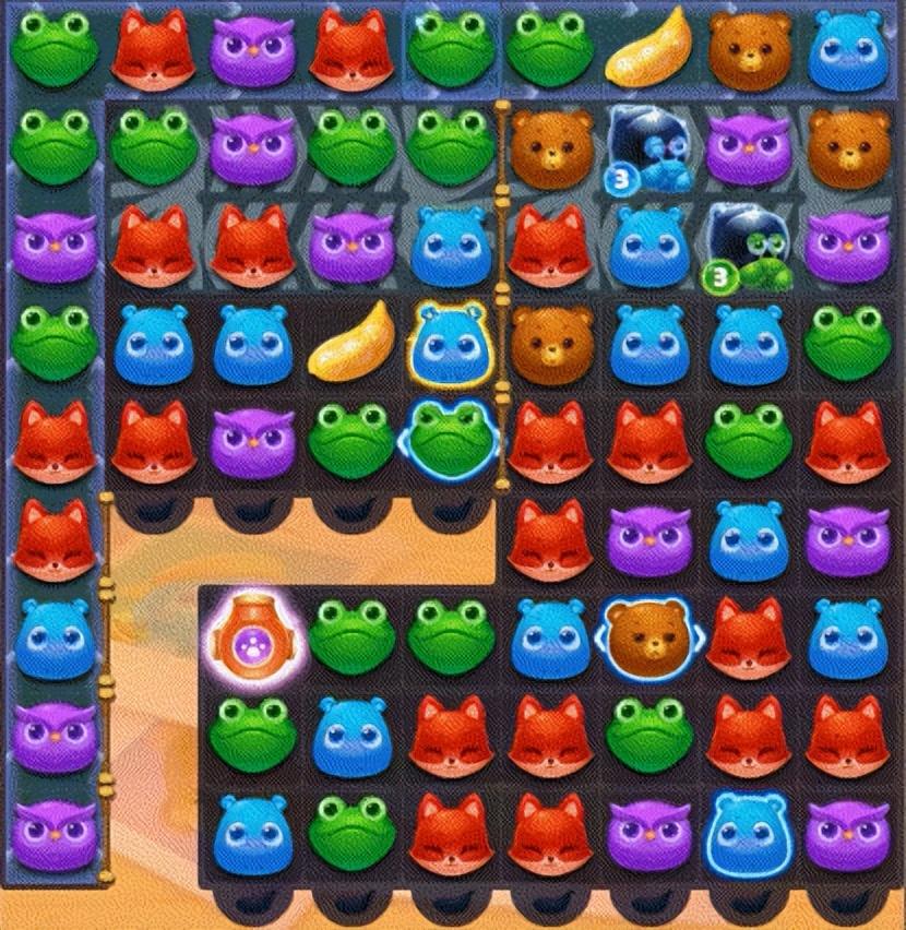 2、第二步:贴边三消或消除爱逗、嘟嘟,激活寄居蟹助力消除周边雪块。