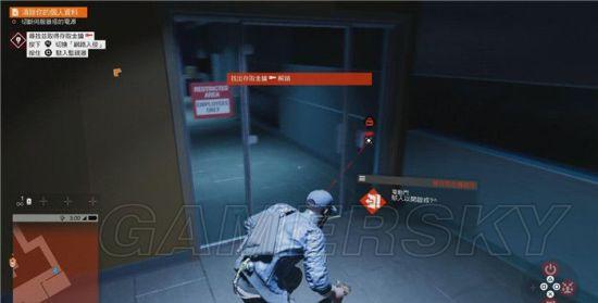 打开进入ctOS内部的门需要找到闭路终端机。按住R3,跟着屏幕上提示的线路来到房顶关掉终端机,马库斯就可以轻松黑入系统,把门打开。