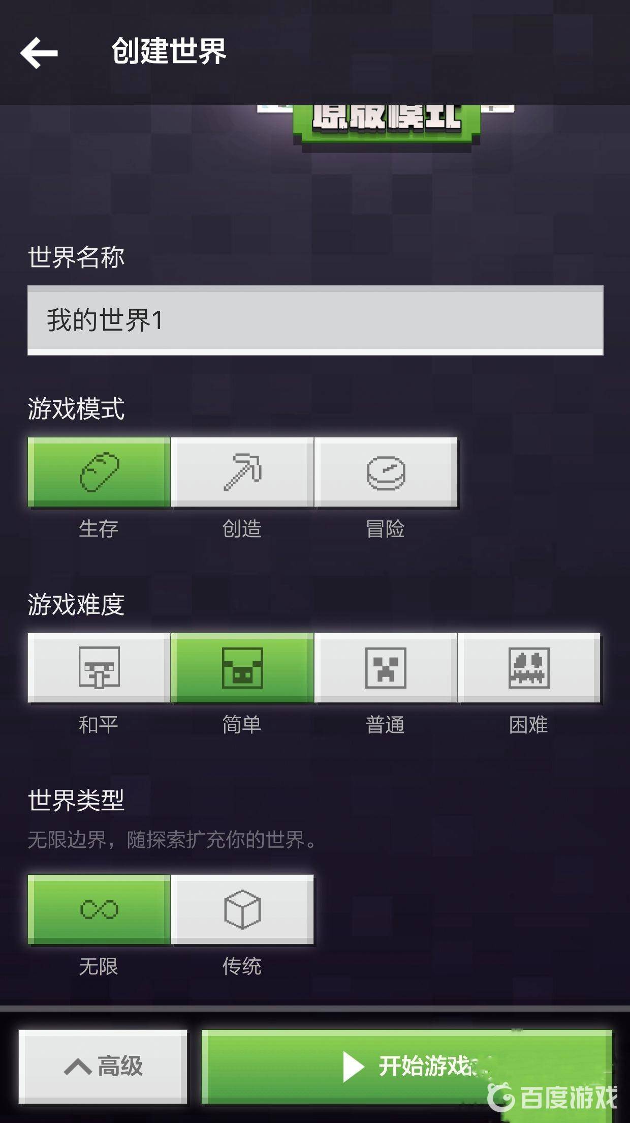 1、打开我的世界手游,进入自己玩过的地图