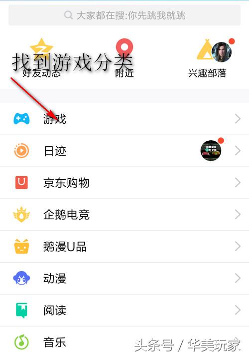 首先打开我们的QQ,找到游戏分类上,打开游戏中心。