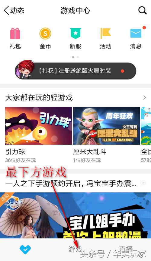 进入到游戏中心,我们需要点击下面的游戏,进入到游戏下载位置。