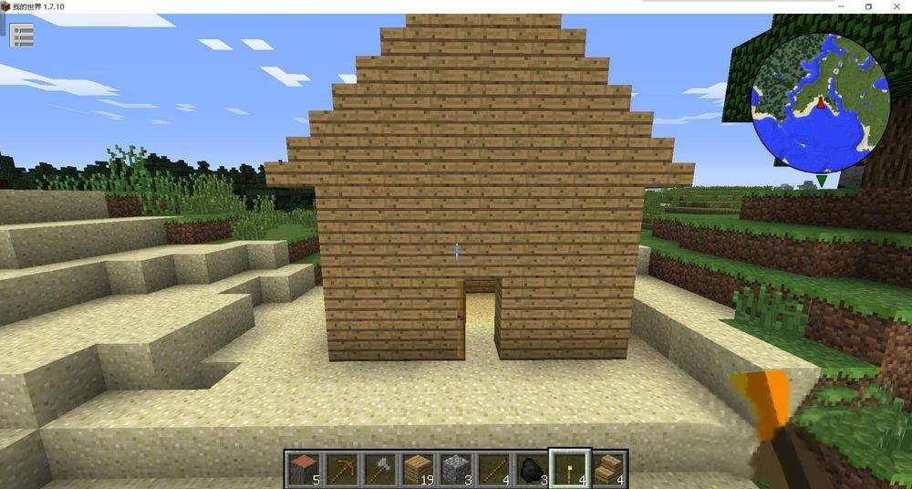 4、这时最重要的一步就要做了,建房子,最好找到一处沙滩,靠近树林或者平原,然后先建造一所简陋的房子活过第一晚,不过大部分人都是挖个坑凑合的。建好房子玩家可以去探索这个世界了。