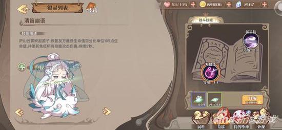 庐山云雾的战斗技能两个,可能由于真的过于高冷,没有与其它飨灵一同发动的连携技能,但这并不影响她的强大。两个技能的名字十分好听:第一个技能叫做清笛幽语,是一个针对单体的治疗技能,庐山云雾吹起笛子之后,可使主力队友瞬间恢复大量生命值,并且短时间内使其免疫所有技能伤害。这个技能无论在打boss的持久战,或是竞技场上的胜负瞬间,都十分实用。