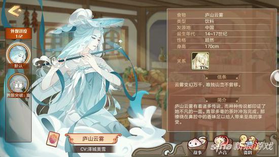 通过空运和抽卡产出的庐山云雾,为最稀有的UR级别,同时也是现有UR飨灵中,唯一的辅助系飨灵。据不完全统计,在《食之契约》相关论坛主题贴中,庐山云雾稳坐“话题女王”宝座。据说在工会系统中,以庐山云雾形象出现的御侍大人,会被膜拜的称为“大佬”、“人生赢家”……