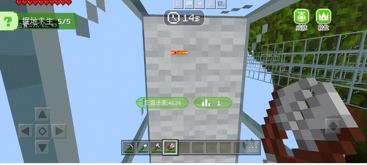 用工具尝试消除手中的方块,一直前进,不同材质的工具和方块前进速度也不同。