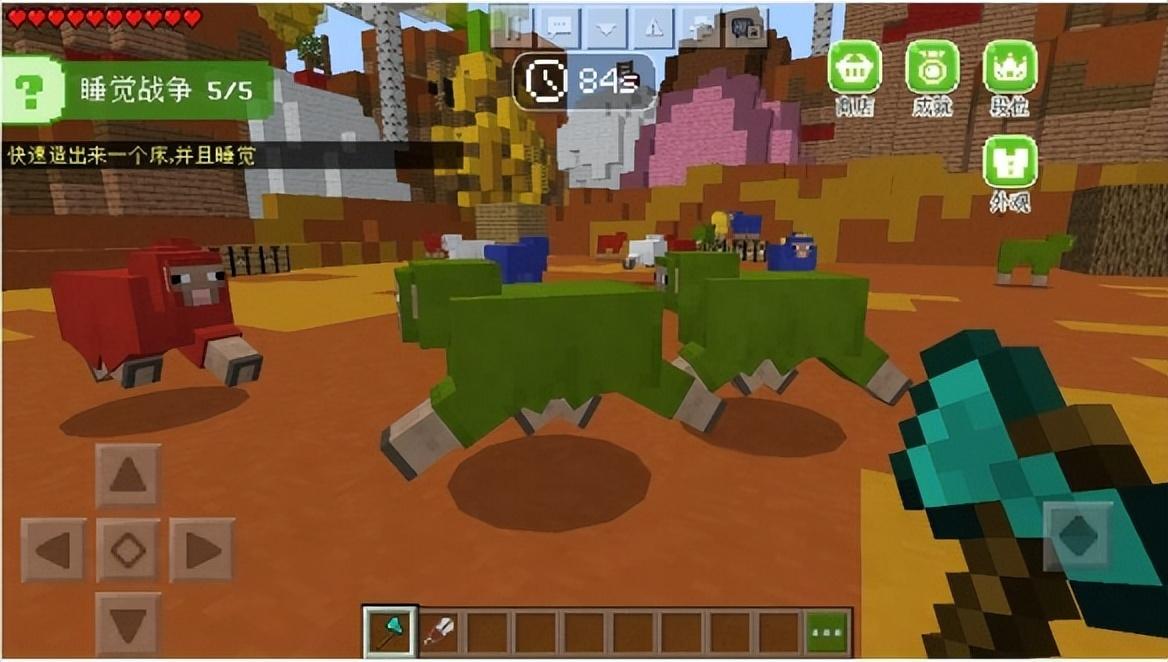 用三个同色羊毛和木板合成床去睡觉,需要抢先拿到三个同色羊毛。
