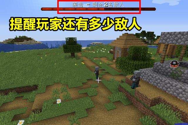当玩家在有不祥之兆的状态下进入村庄后,屏幕上方便会出现一个进度条。进度条涨满之后(几秒钟的时间),便会出现灾厄村民前来袭击村庄。