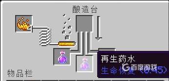 3、然后炼药台放进水瓶,烈焰粉,地狱疣。