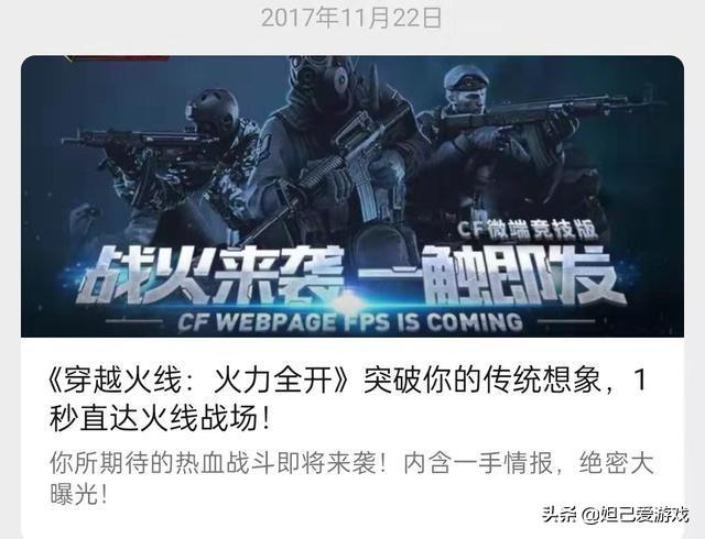 2017年11月22日,号称三亿鼠标枪战梦的知名射击IP《穿越火线》首次以微端的方式与玩家们见上了面,据悉,微端版《穿越火线》被定名为《穿越火线:火力全开》,这是既《枪战王者》之后的又一CFip新作品,而所谓的微端其实也就是人们口中常说的页游。