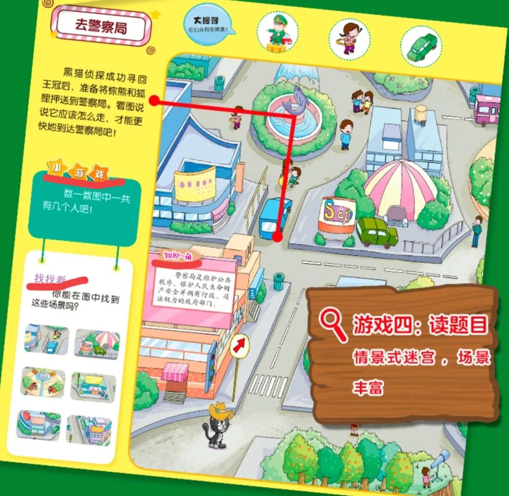 每个迷宫都是由大彩绘插图构成,有多种玩法,情景式迷宫、小游戏、找找看、知识一角,多方面开发孩子智力。