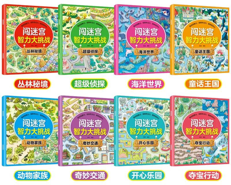 全套8册,包括《动物家族》《奇妙交通》《童话王国》《开心乐园》《夺宝行动》《海洋世界》《丛林秘境》《超级侦探》,集游戏、互动、探索、冒险、益智于一体,趣味十足。