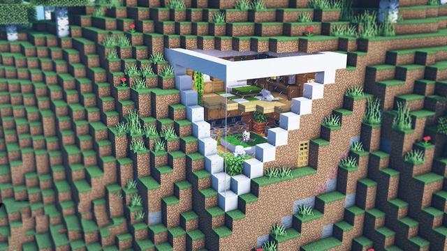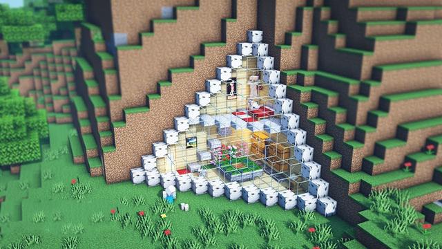 你见过三角形的房子吗?在平时游戏中,竟然会遇到在山体的边缘位置,出现一个大的山东,可以游戏前期来当作自己的“避难所”,但“避难所”在稍加改造以后,也能成功一间漂亮的房子,利用天然的地形,用白色方块把房间边缘扩建出来,室内稍微装饰一下,单人即可“入住”了!