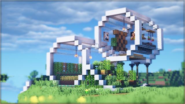 在mc里越是现代风的建筑,越多是“简约风格”的设计,同样适用于生存玩家来使用,就比如这个简单的建筑,唯一的难度是需要玩家能够用方块来搭建一个“圆形”,然后把“圆桶”用玻璃围起来,这样一个建筑就设计好了,最后一些简单的修饰跟搭配,既节约材料跟时间,又能完美的搭配光影!