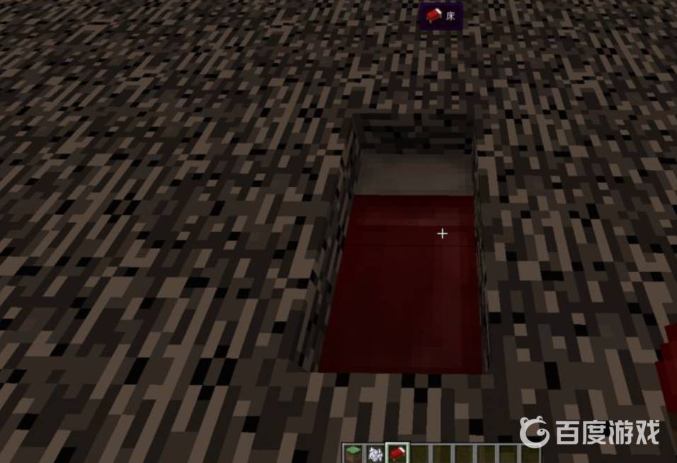 4、然后玩家将床打掉,可以看到基岩被挖掉了一个。