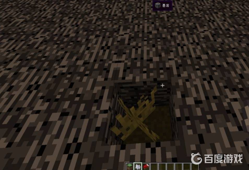 1、进入游戏,玩家需要找到一个2格深的基岩坑。