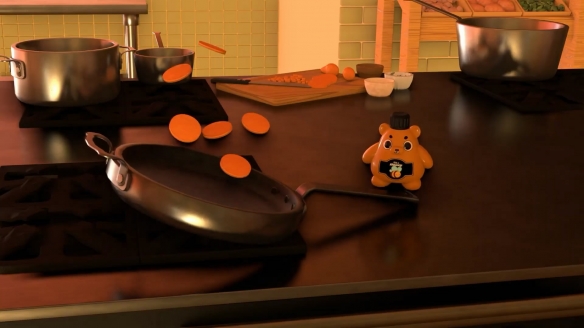 本作中玩家将操作小熊厨师,在宽敞的厨房里跑来跑去进行料理,在人类的世界里努力开一家成功的餐厅。这次发表的预告片中我们可以看到在游戏中运送食材,使用烤箱和平底锅等烹调器具的画面。