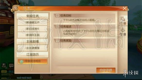 然后就是小姐姐约你五点去花谷~小姐姐会巴拉巴拉说一堆~等她说完就有了称号~~