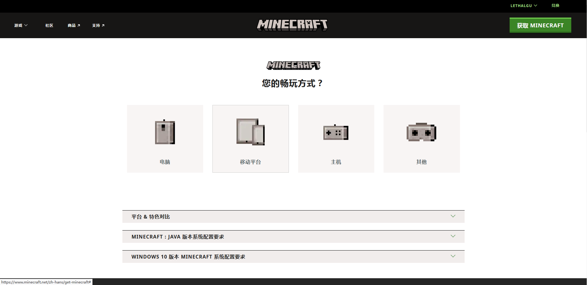 1.首先,进入Minecarft的官网:www.minecraft.net(可以直接百度搜索我的世界官网)
