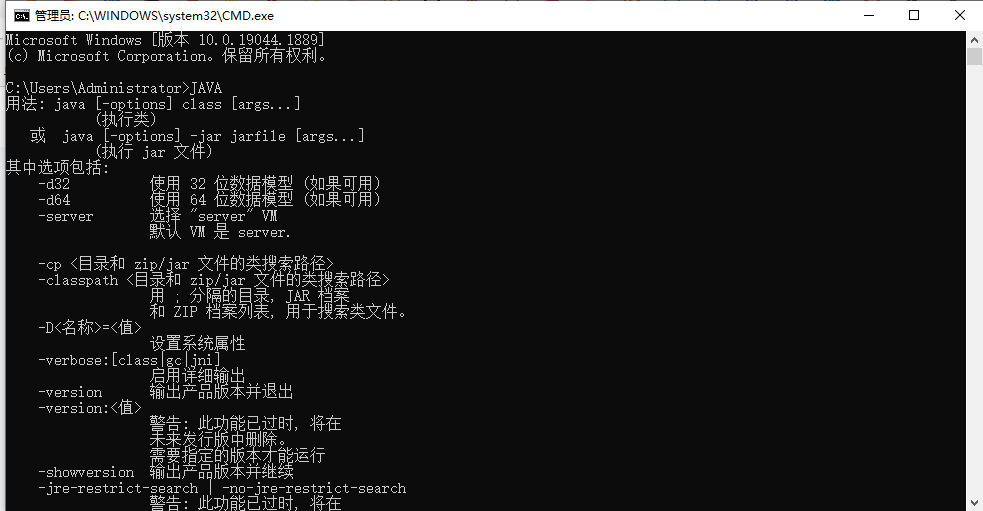 “cmd”窗口出现,输入命令“Java”,再按回车键,如果出现以下画面则电脑拥有JAVA运行环境,反之则没有