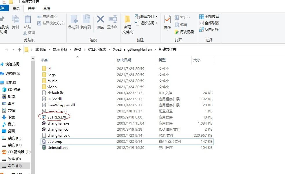 win10中血战上海滩闪退的原因是分辨率不兼容的问题,首先我们需要下载一个名叫SETRES.EXE,的软件,关于下载地址请大家自行百度.下载完成后我们把SETRES.EXE复制到游戏安装目录即可.