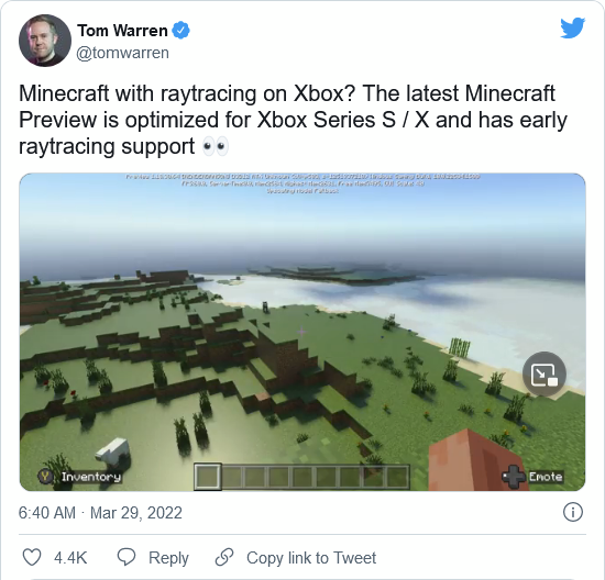 微软已经开始在Xbox X/S系列游戏机上测试对《Minecraft》(我的世界)的光线追踪支持。一个新的Minecraft预览版已经提供给Xbox内测人员,它包括有限的光线追踪支持。最新的测试版本也被标记为针对Xbox X/S系列的优化,这表明下一代的补丁很快就会出现。