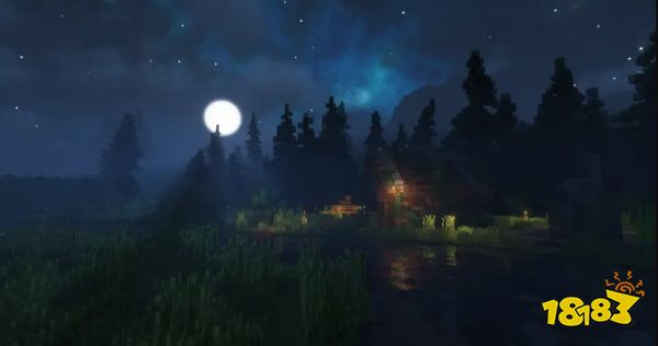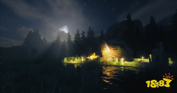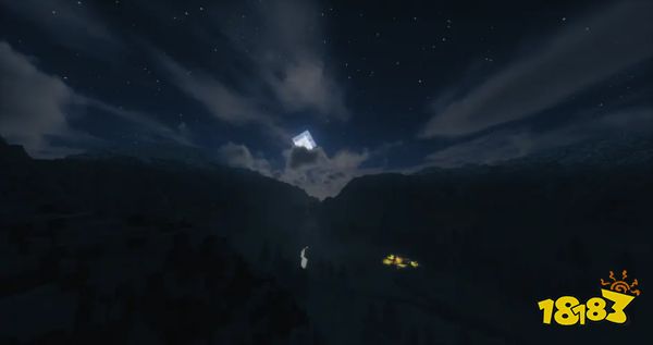 可能看到这白天的远景有的人就想直接跳过了,确实这远景实在太梦幻,但11-12帧的fps表明其对配置要求不算太高。实际上他别有韵味的是近景,这个体积光的表现甚至可以对拼后面的几款高要求光影,但动态效果不尽人意。这款光影真正突出的地方在于远处渐入的雾气效果(该效果是本文所介绍的光影里唯一的),这在你视距较低的情况下有效避免一些尴尬问题,而夜晚远景就不会想白天一样奇怪了。体积雾的加持使得远景意外的不错,再加上可以设置开启的天空银河。虽然只是张贴图,但韵味瞬间就出来了有没有,夜晚近景是我觉得这款光影最不错的地方。渐隐雾+体积光,以及还算可以的光源。而且在12视距下也能维持在60帧左右,实属不易。