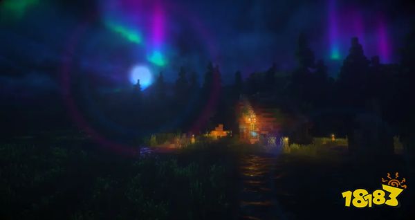 看这远景的观感,是不是迪士尼来了?当然玩笑归玩笑,这款光影的效果不是一般的多,而且是所提及的所有光影里唯一一个全汉语版本。实际上这款光影在正常白天的角度下还是很正常的,至于朝霞晚霞的效果,见仁见智吧。到了晚上就有意思很多了,因为她的极光罕见的拥有红绿蓝三色版本,外加这巨大的自带镜头光晕,不过就算是12视距的情况下,低配置的情况下也只能带到15-16帧,果然强大的背后是贫穷的泪水。