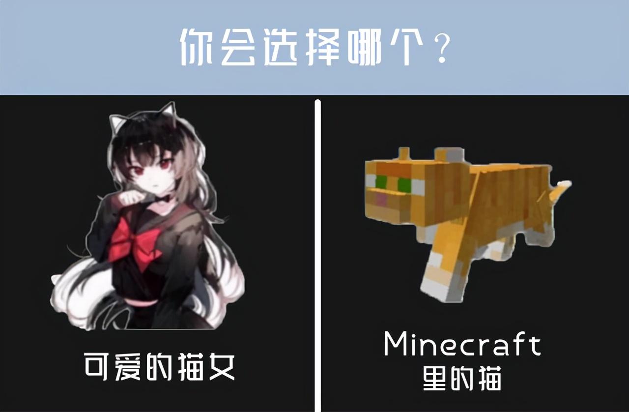 请做一道选择题,“可爱的猫女”与“Minecraft中的猫咪”,你会选择哪一个?作为一个老mc玩家,当然是选择Minecraft中的猫,毕竟“猫女”又不会帮助玩家驱赶“苦力怕”。