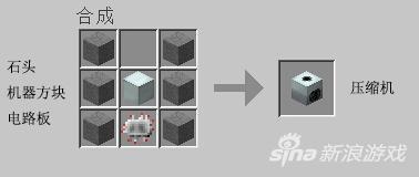 压缩机制作:4个石头、1个机器方块(也叫机械方块)1个电路板,即可合成一个压缩机。