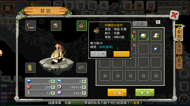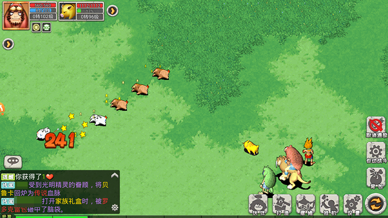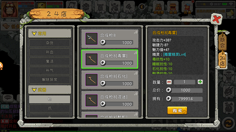 借助精灵的力量,打怪PK才能出奇制胜!石器《恐龙宝贝向前冲》中的各种装备道具,通常都会附带某种精灵,除了能够给玩家角色带来攻击、防御、敏捷等常规属性的加成外,还能使角色获得相应的特殊战斗效果,比如合成枪8[毒雾],就附带“毒雾精灵”。使用附带精灵的装备进行战斗,可以产生使敌方无法行动、持续掉血等奇效,成功克制敌人取得战斗的胜利!