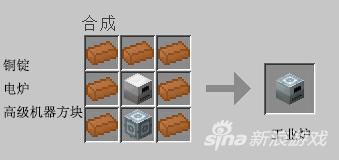 工业炉合成:1个电炉、1个高级机器方块、7个铜锭,即可合成1个工业炉。