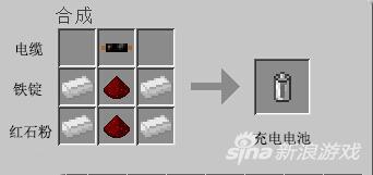 电池制作:4个铁锭、两堆红石粉、一个电缆就可以制作出一个电池了。