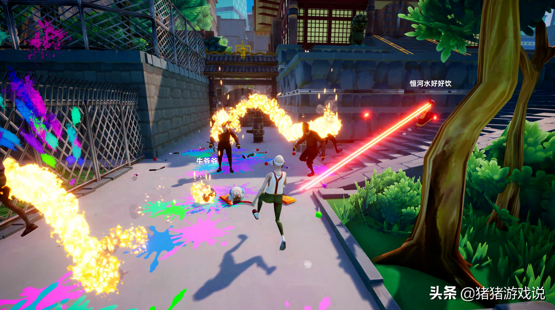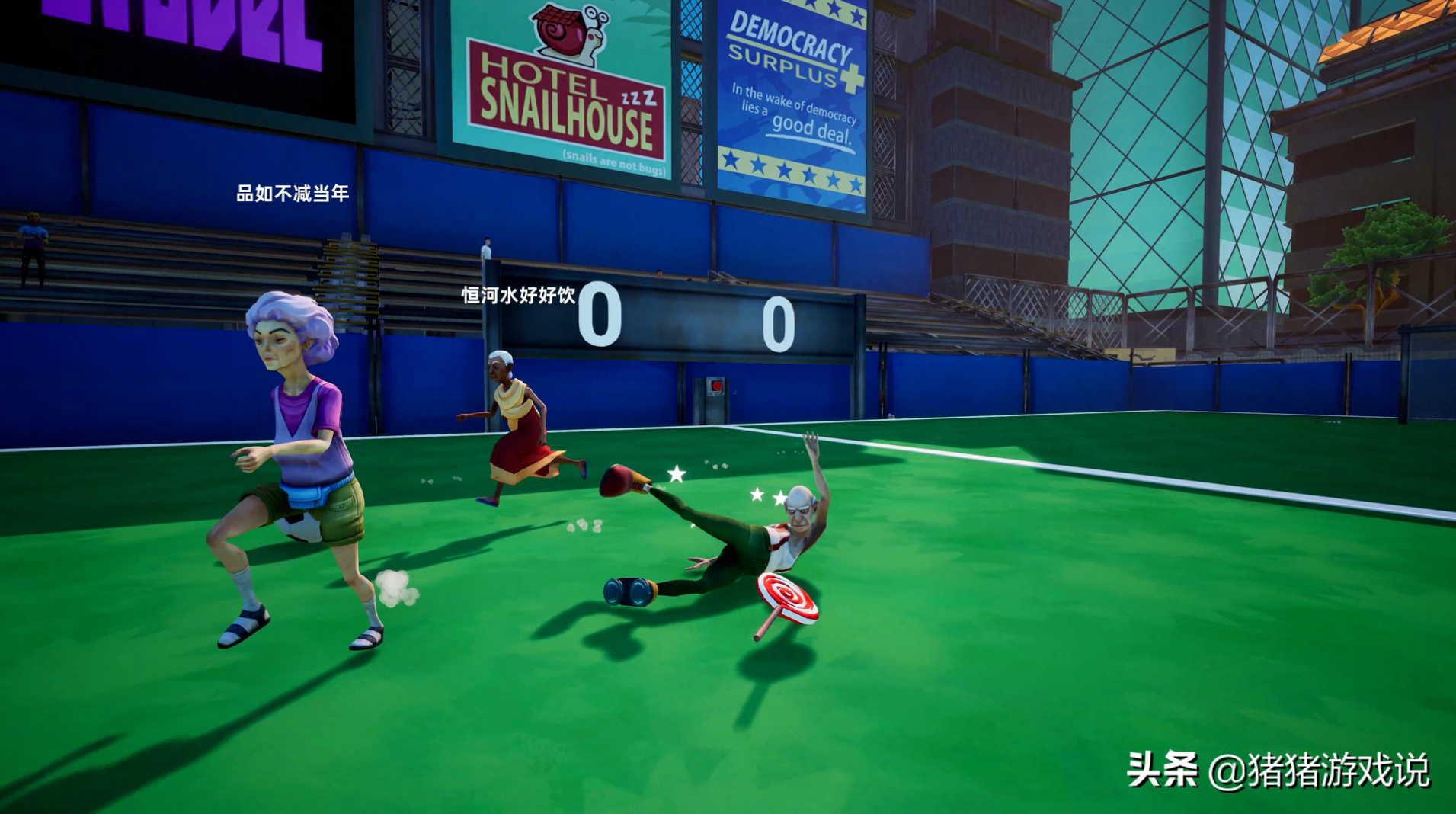游戏可以单人游玩也可以选择最多四人联机,共同完成挑战。但途中你也要小心老六们把你的胳膊或者腿扯下来。游戏中有着无限的互动,任何道具,比如巨型咸鱼、蹦床、枪支、电线、烟花,火箭筒、斧头、长号、汽笛和喷气背包等等都可以拾起。没错,它们全都可以用来伤人、致残。