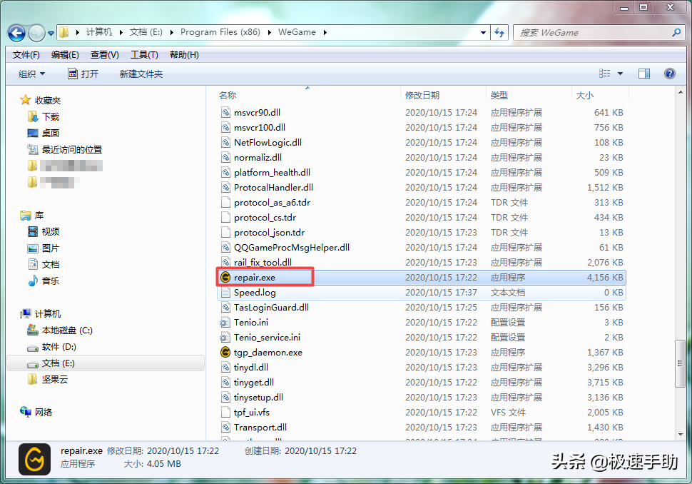 ②接着在软件的安装路径当中,找到【repair】应用程序,然后双击启动它,就可以解决WeGame闪退的问题。